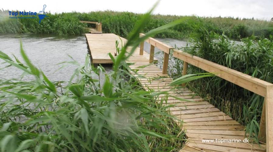ECO-badepontonen i Tarvastu kombinerer økologisk ansvar med brugervenlig design til naturbevarende vandaktiviteter.