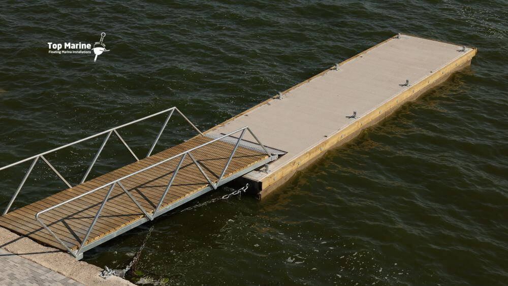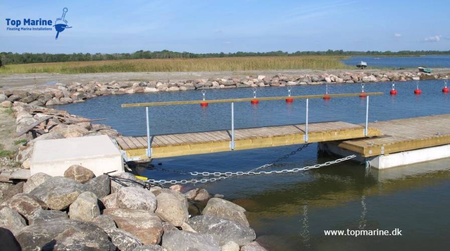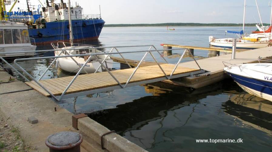 En solid og elegant overgang til din flydebro En velfungerende landgangsbro og et stabilt landfæste er afgørende for nem og sikker adgang til din flydebro. Hos TopMarine tilbyder vi skræddersyede løsninger, der sikrer en holdbar og æstetisk forbindelse mellem land og vand.
