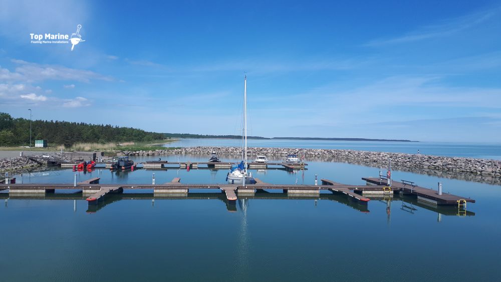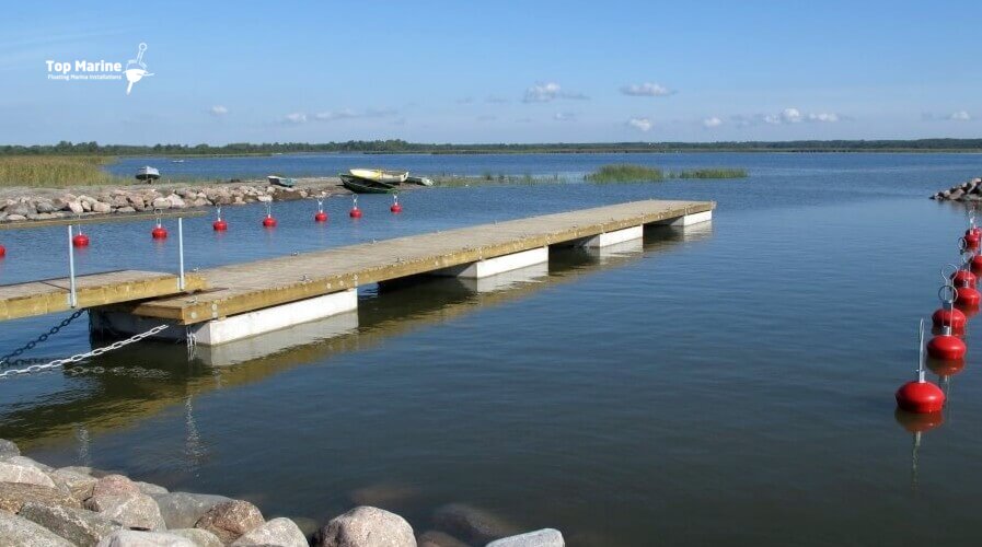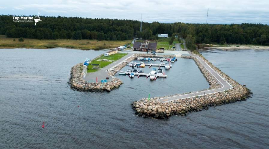 Træpontoner med betonflåd ved Pirita Kalevi Sejlklub